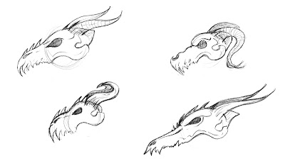 In hindsight, I feel like I need to push the shapes more but I'll come back to that later. I then started to play about with different faces, skull shapes, and thumbnail some poses of what this character might do.